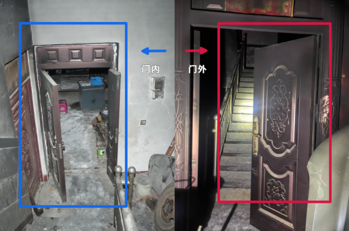 正是这道门在此次火灾中发挥了至关重要的防火、防烟分隔作用,将火势和有毒浓烟基本阻隔在一楼起火区域,使得身处二楼熟睡中的房东夫妇在火灾初期未受浓烟侵袭。