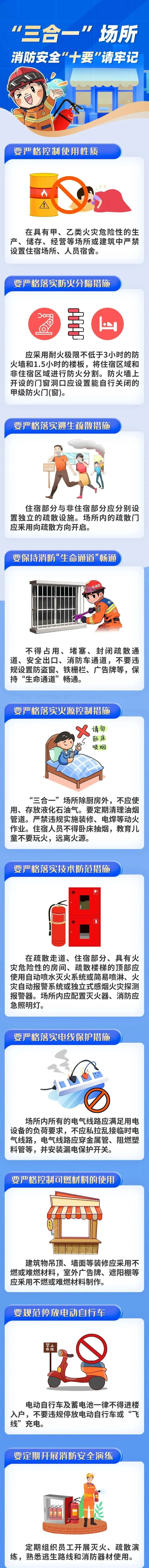 “三合一”场所消防安全隐患不容忽视,日常一定要加强隐患排查,做到防患于未“燃”,以下“十要”请牢记↓↓